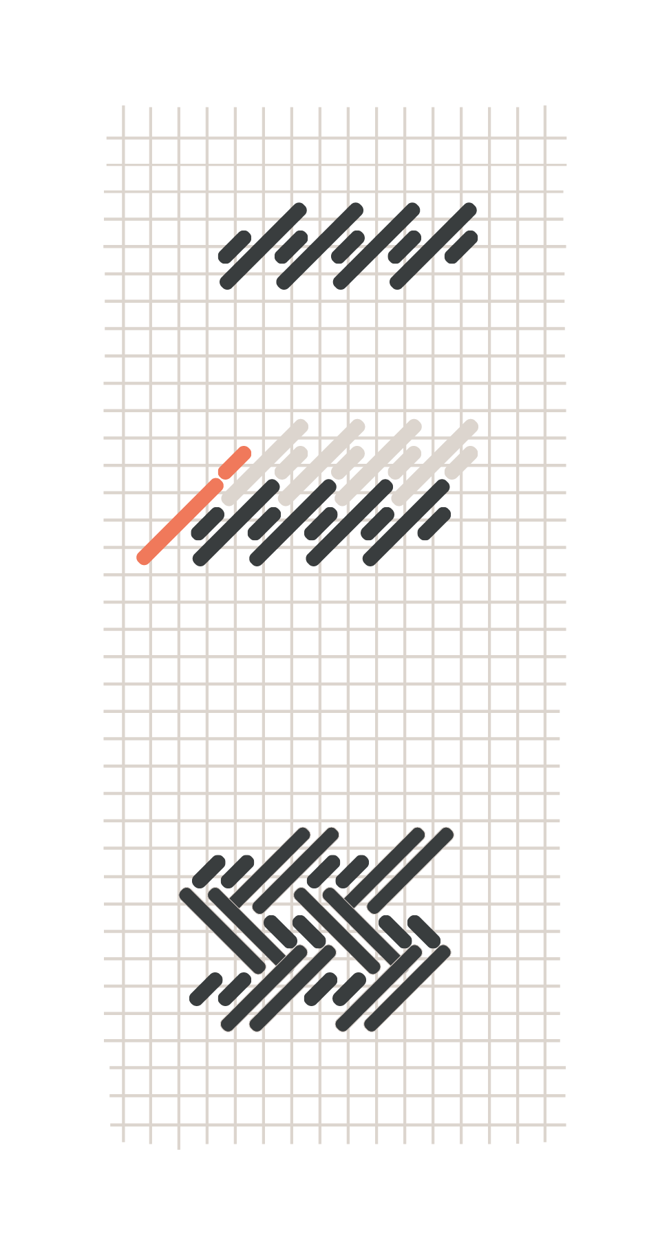 Alternate between 2 Tent Stitches followed by 2 longer stitches. Change the direction of the stitches for each row to create a woven effect.